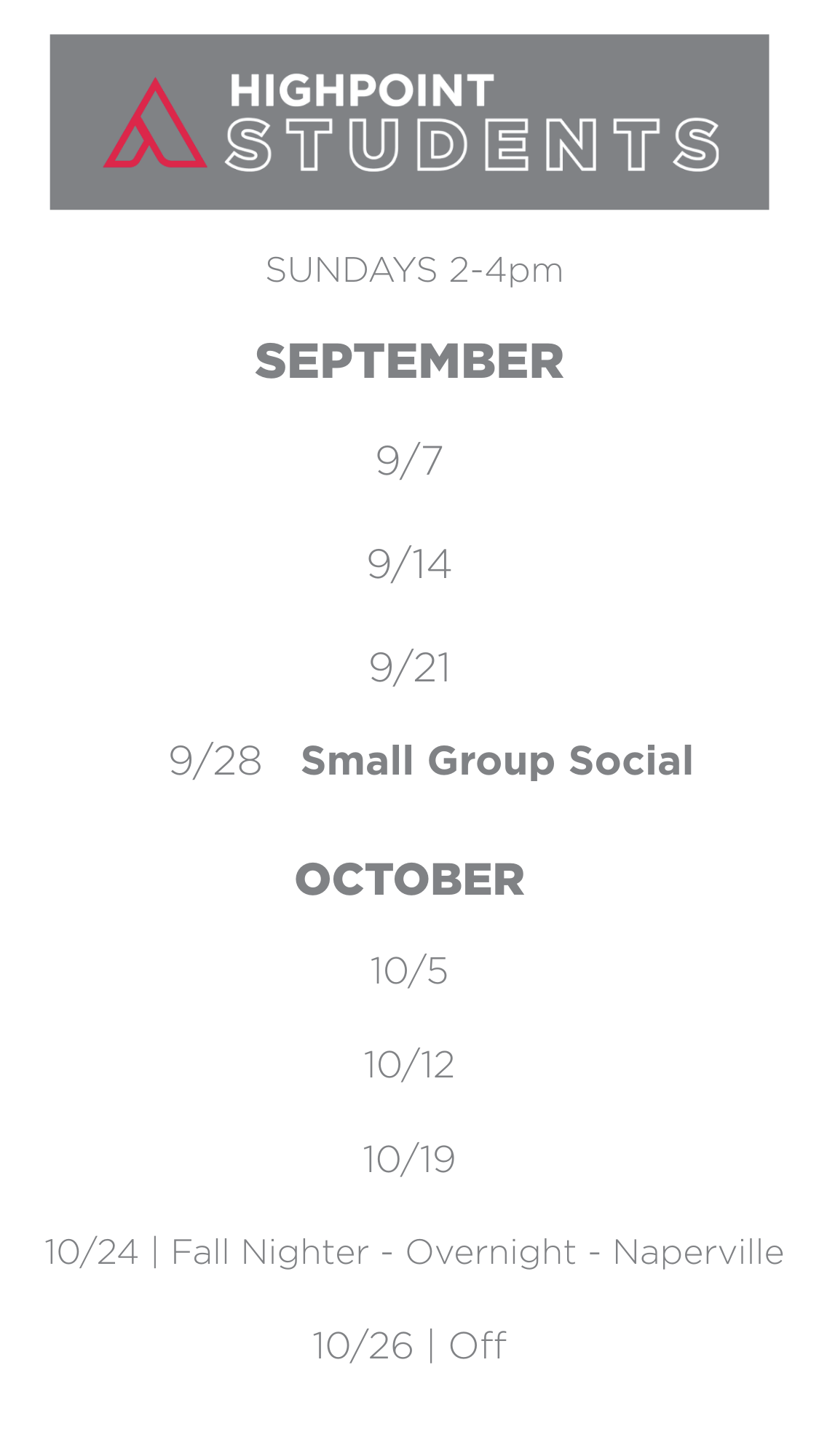 Beyond Sundays, Highpoint Students offer seasonal events and trips.